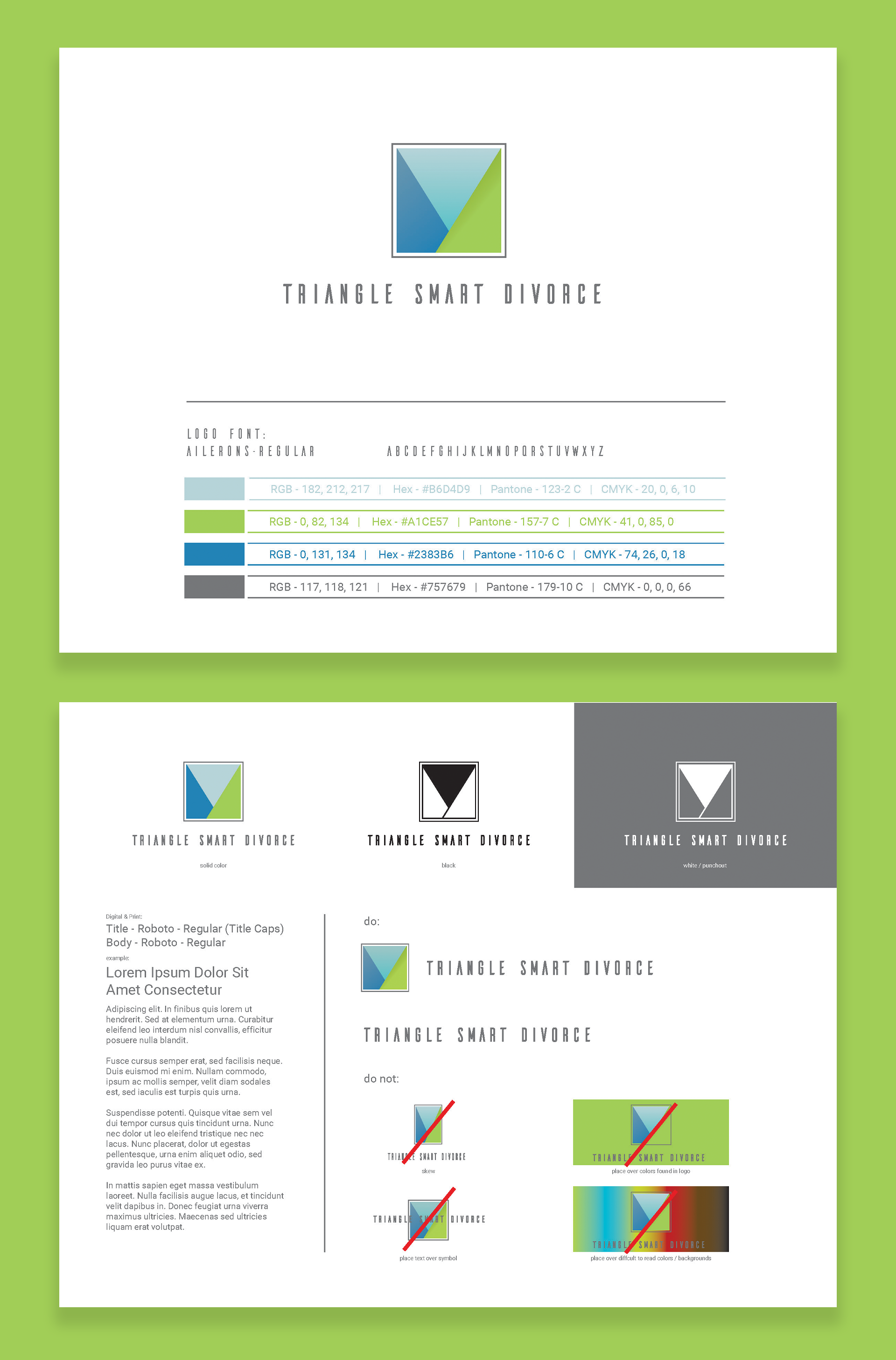 A divorce lawyer located in Raleigh, North Carolina was seeking an updated look for her company. The only requirement ask was to have a triangle in the design. With the company located in Raleigh also known as the triangle because of the otwo major cities surrounding it, we landed on a trust colors scheme that showed a representative triangle for each of the three cities of the area.